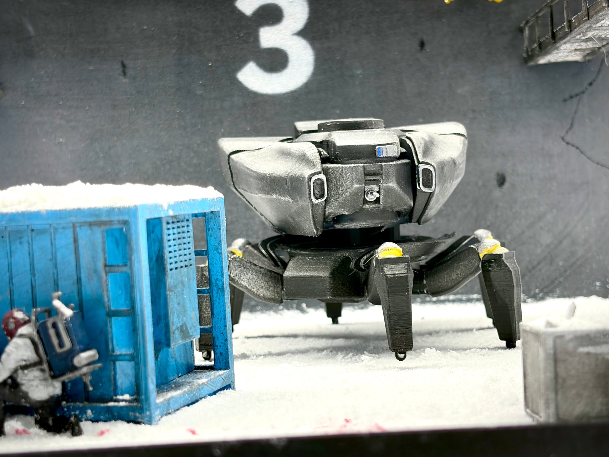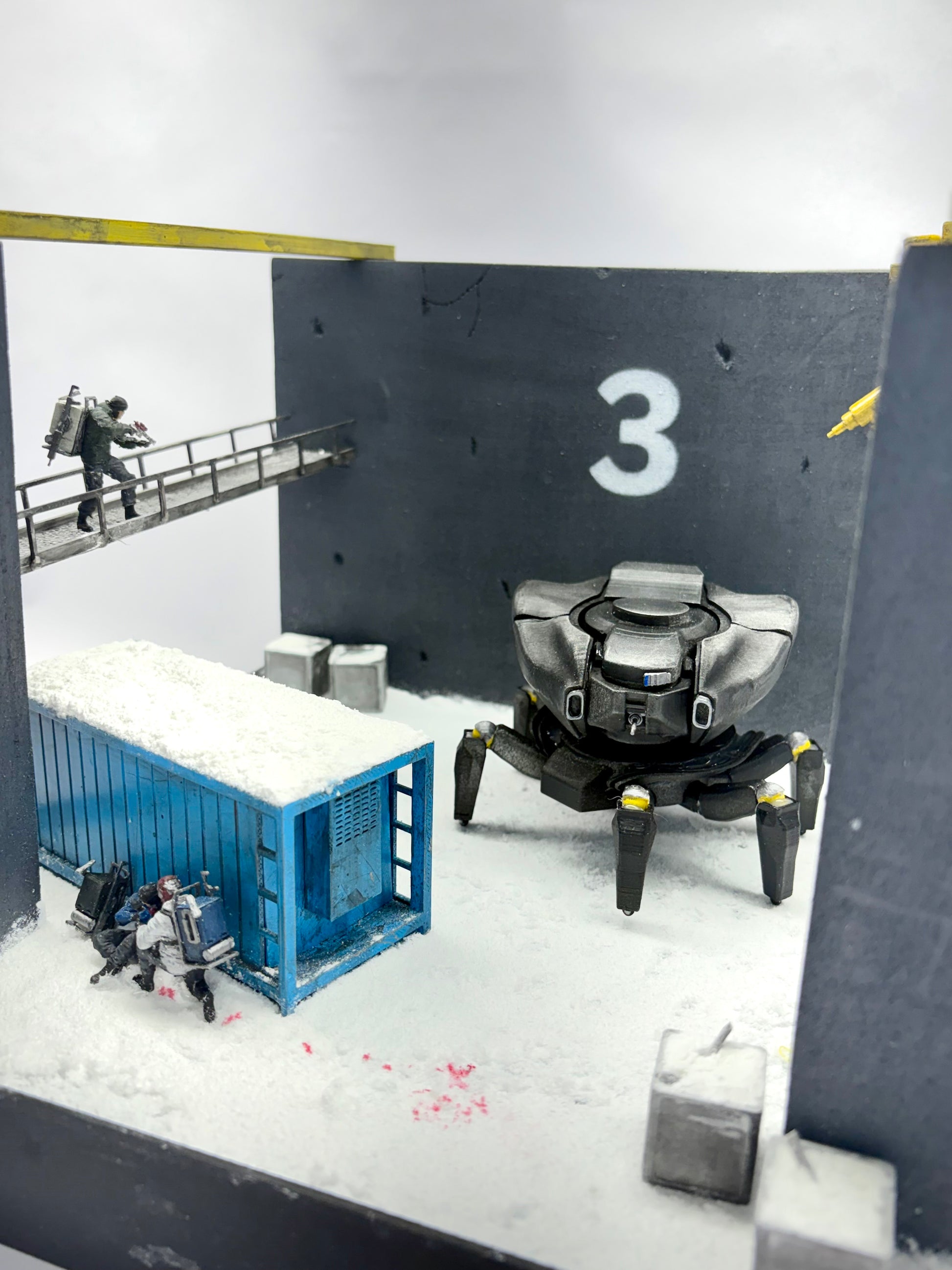 This custom piece features the Bastion I designed in Blender. It follows a trio as they fight off a Bastion in the loading docks of Stella Montis. There are two available, both are nearly identical, with some small variations due to the handcrafted nature of the piece. All sales on custom artwork are final. The pieces ship within 2-3 days and will be carefully packed to avoid damage in shipping. The piece measures approximately 10”x10”x7”.