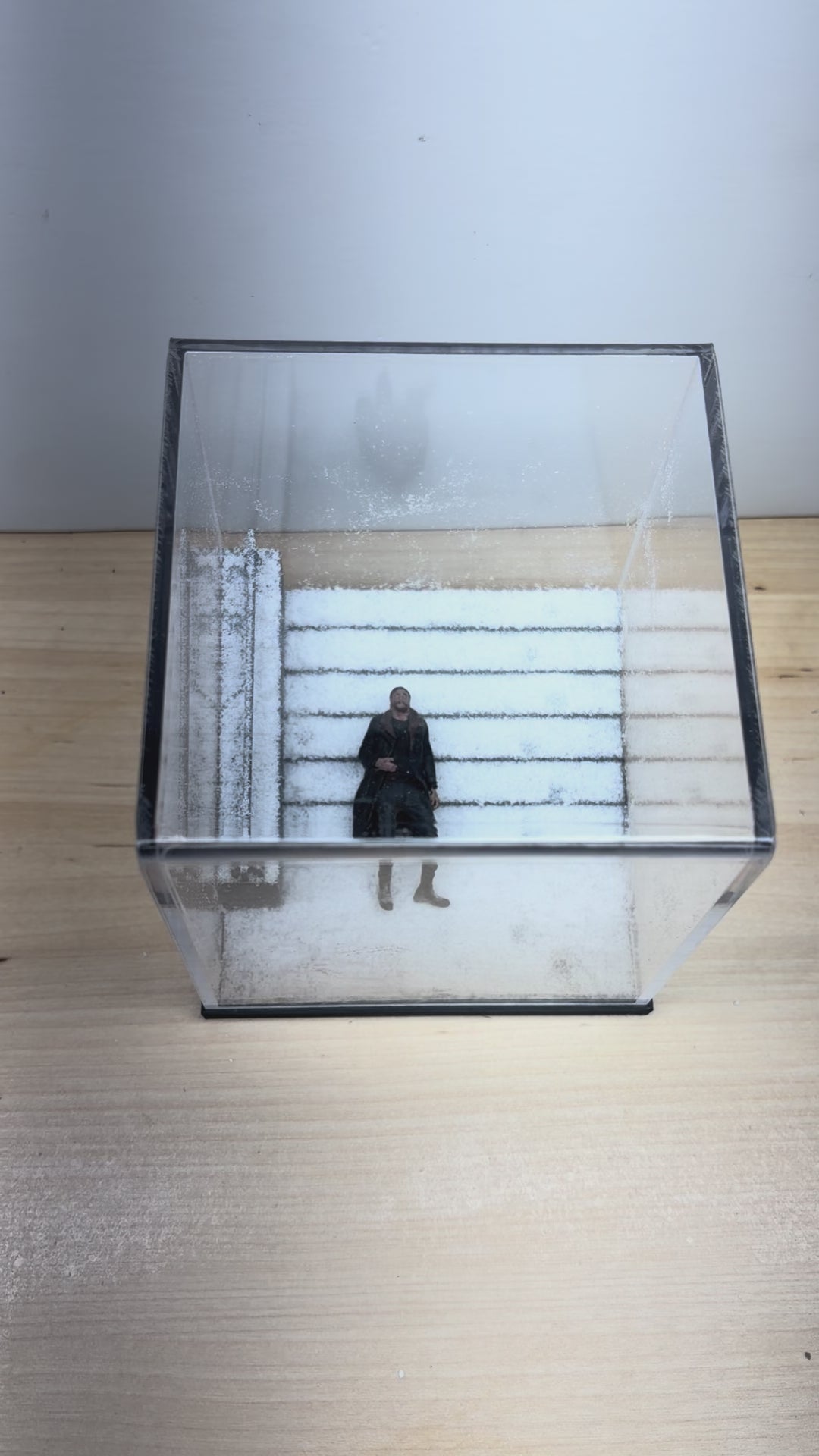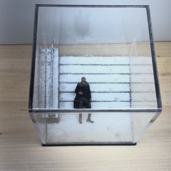 This handcrafted diorama depicts the staircase scene from the third act of Bladerunner 2049.