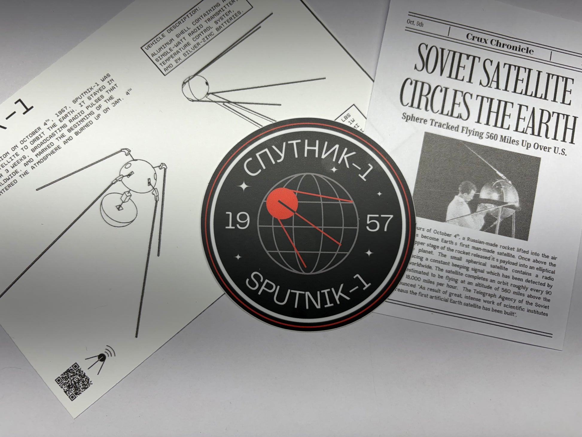 Celebrate mankind's first orbital satellite with this 3" mission-patch style sticker commemorating Sputnik-1. This sticker is also included in the Sputnik-1 model kit.